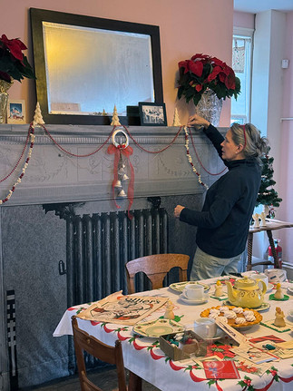 Once again, the Club gathered on December 4 at Crane House for the annual decorating party. This year, we were much more careful about ensuring the decorations would be in keeping with the times that the house was in use, from its first days as a fancy farmhouse built in 1796 to its new life when, in 1920, African American women in the community bought the home as headquarters for a YWCA, a segregated space. Thank you, Karen Fricke, for your extensive research into historical decoration (shown here) as well as your astonishing creation of a feather Christmas tree. See the gallery, below, for scenes from this beloved event.